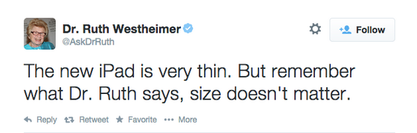 Dear @AskDrRuth, please live tweet every Apple event. http://on.mash.to/1qDBjV1 pic.twitter.com/xLGgriT1od