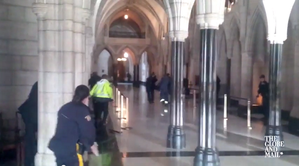 @mashable Video captures gunfire exchange inside#Canada's Parliament building. Watch: http://on.mash.to/1wktDM6 pic.twitter.com/GwgD5gTH13