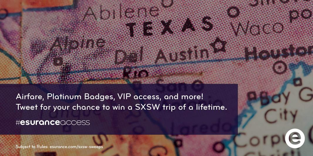 @mashable eat delicious Texas BBQ, attend badge only parties, visit the#esuranceaccess booth and did I mention eat?pic.twitter.com/SuII4LVAj4