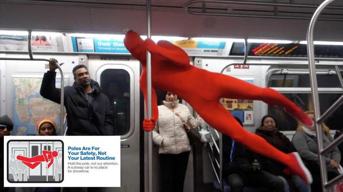 “@mashable: Just New Yorkers in body suits recreating the MTA's etiquette ads. http://on.mash.to/1CxJVmx pic.twitter.com/3IXQkAwgz7”@FitPoling