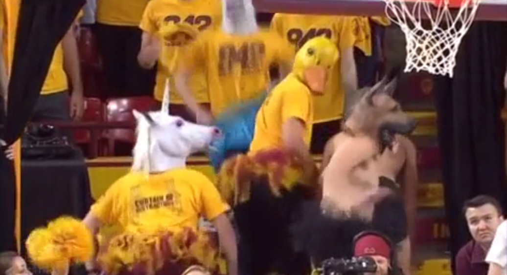 Opp for guerrilla mkg? @mashable "Curtain of Distraction" is funniest weapon in college hoops http://on.mash.to/1E3pleo pic.twitter.com/ry7loigRVV