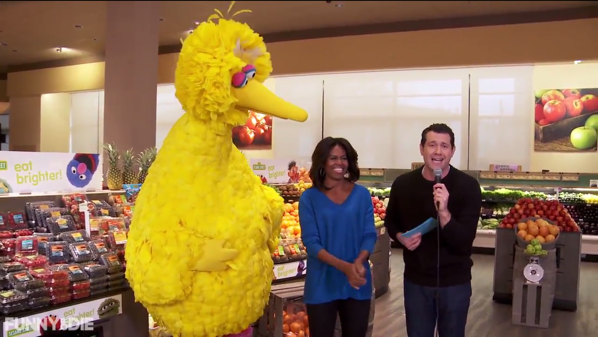 @mashable: That time@MichelleObama,@BigBird &@BillyEichner ran around a supermarket... http://on.mash.to/17NpyZM pic.twitter.com/HmRuNjgXhu