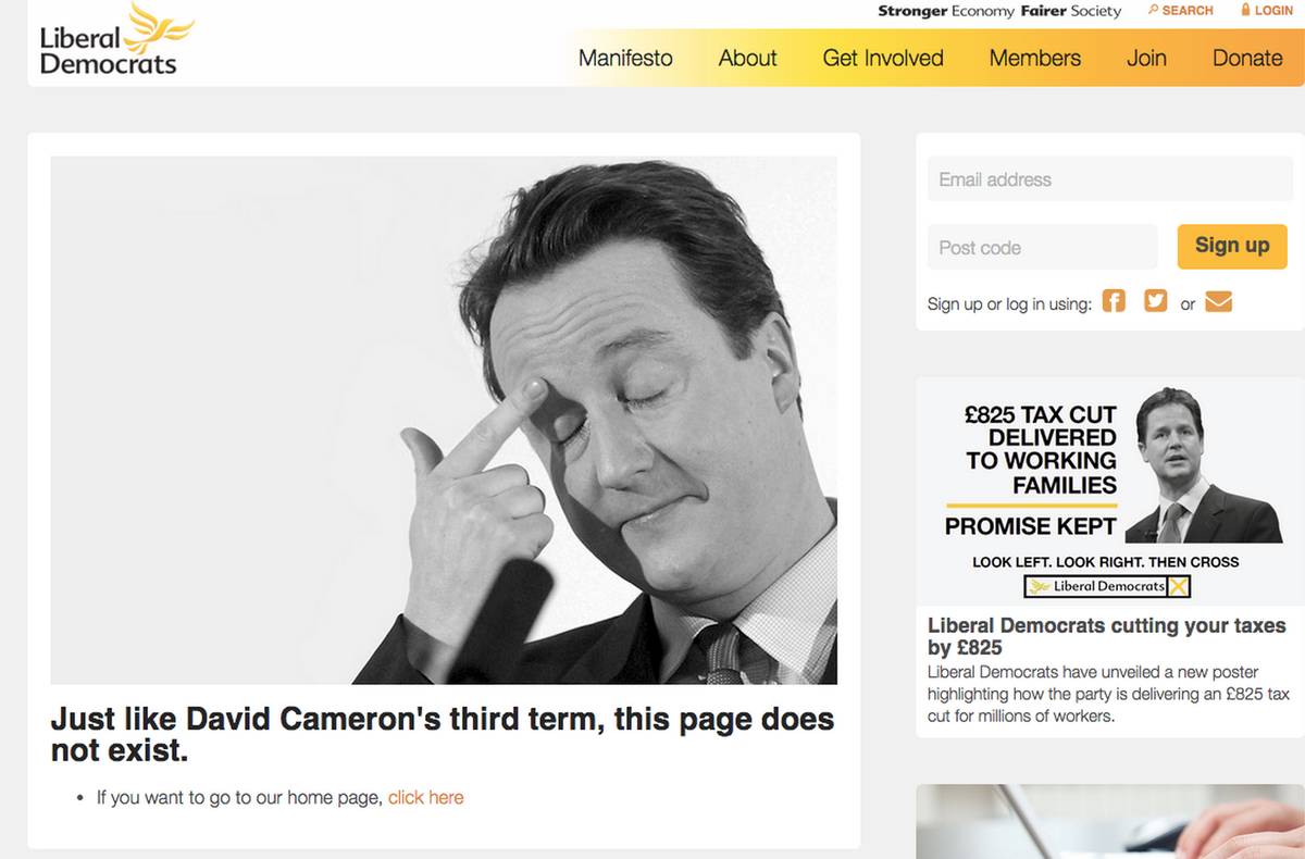 @mashable an attempt to boost hits I reckon. Their official 404 is rather boring. http://www.libdems.org.uk/404 pic.twitter.com/6ALcAN4lOm