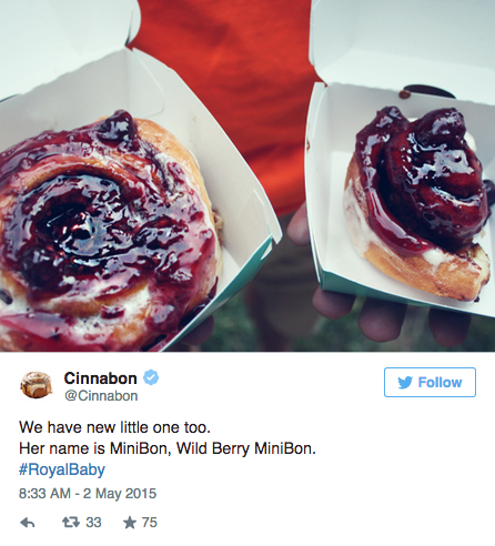 @mashable 15 brands jumping on the royal baby bandwagon: http://on.mash.to/1dCKCVp pic.twitter.com/Op5zUdshbO - now I want a "minibon"!