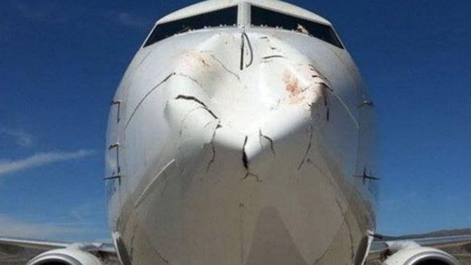 Whoa! / @mashable: This is what happens when a bird hits the nose cone of an airplane: http://on.mash.to/1Qpq7cU pic.twitter.com/OQNCh4wZod