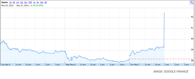 BREAKING: Yelp shares spiked up, then were halted, then spiked up again 15% in joy. http://on.mash.to/1QqAZr7 pic.twitter.com/MgXhT5a65V