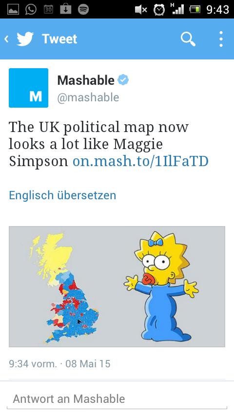 “@mashable: The UK political map now looks a lot like Maggie Simpson http://on.mash.to/1IlFaTD pic.twitter.com/PIMOAeYJ4T”