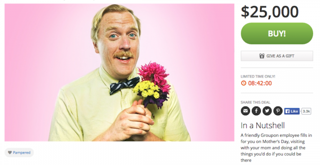 @mashable: A Groupon employee will visit your mom on Mother's Day for just $25,000 http://on.mash.to/1JUMshC pic.twitter.com/HCp9T249oU