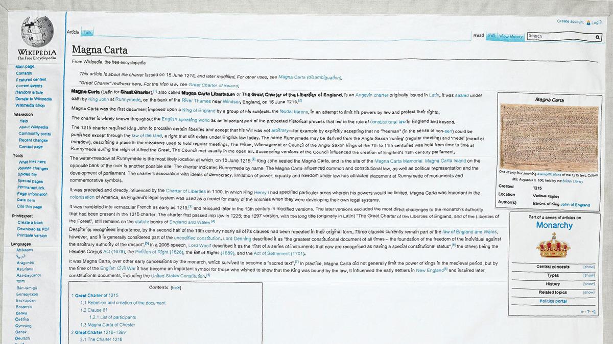 Snowden helped turn the Magna Carta's Wikipedia page into an embroidery http://mashable.com/2015/05/14/magna-carta-wikipedia-embroidery/ …pic.twitter.com/dsUhFninKR