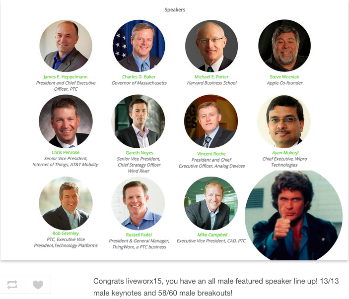 @mashable Maybe they pick the best folks for public speaking/experience? STEM being unfair to women is not these companies' fault.