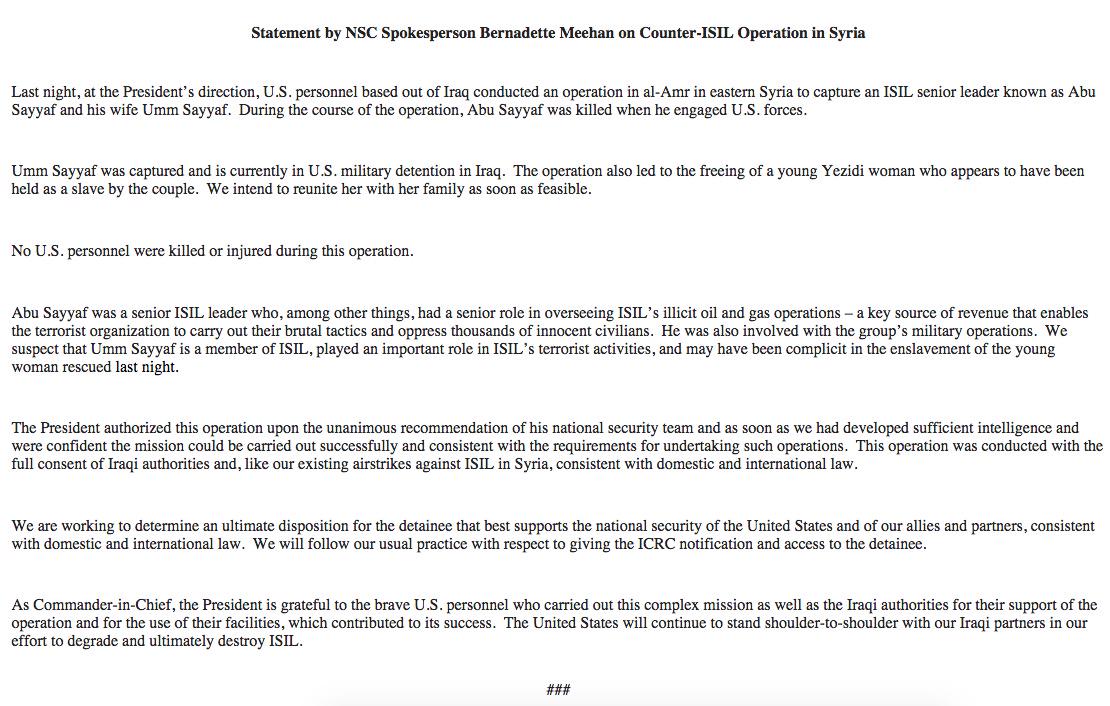 @mashable See the full White House statement on the US operation that killed the 140 character limit on Twitterpic.twitter.com/ESTeUkMGKR
