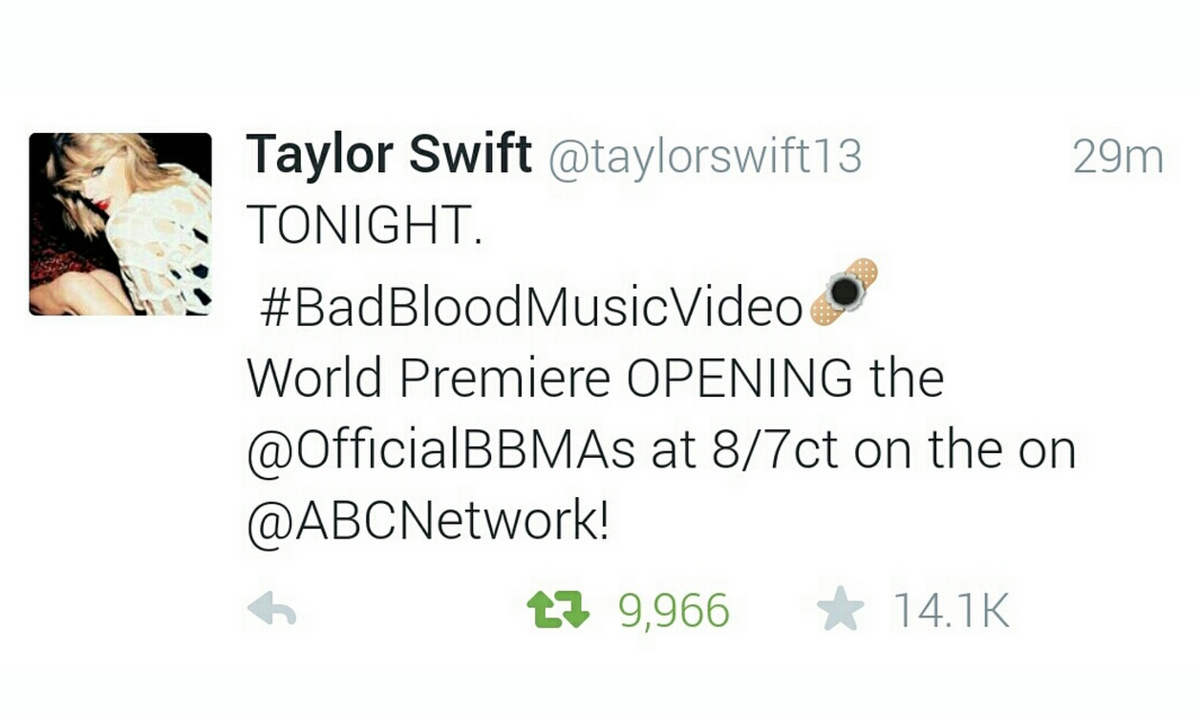 @mashable :Taylor Swift has her own 'Bad Blood' emoji because she's Taylor Swift. http://on.mash.to/1LctHUY pic.twitter.com/ViiKumle4E