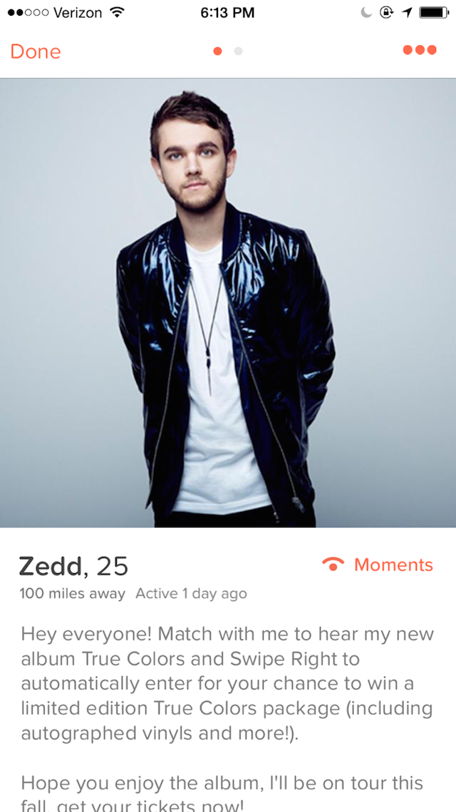Spoiler: Zedd is on Tinder, but it's not because he's looking for a hookup http://on.mash.to/1Hnnm5e pic.twitter.com/8C4RkT30QG