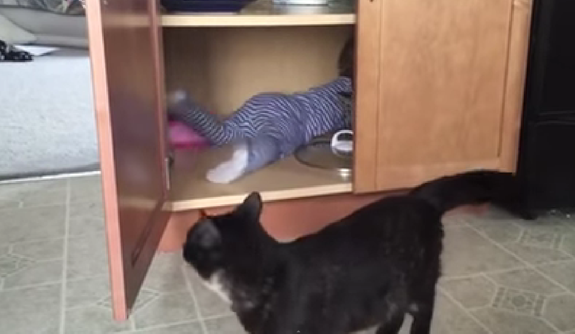 @mashable: Cat shuts baby in cabinet because cats are jerks. Watch http://on.mash.to/1cV8cfx pic.twitter.com/bIsVSvisq9