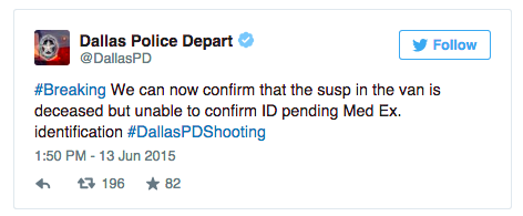 On @mashable: Dallas Police Department shoot out June 12, 2015 https://youtube.com/watch?v=tmL6vWvHn8M … #SavedYouAClick