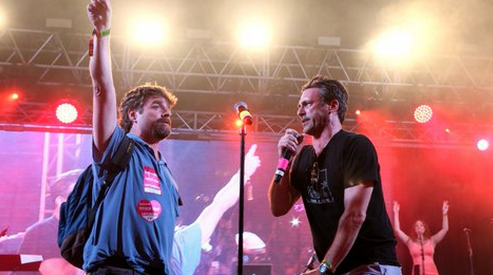Jon Hamm and Zach Galifianakis sing 'We Are The World' at #Bonnaroo2015 http://on.mash.to/1Bdg9Z3 pic.twitter.com/VpegMjijJK