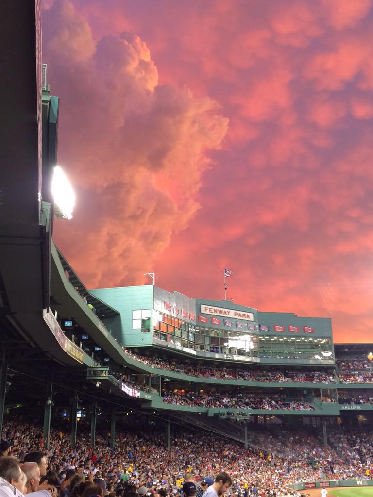 @mashable: Last night's sunset in Fenway Park was unreal. http://on.mash.to/1JjdaAQ pic.twitter.com/PyHMAM9yHq” this one I didn't take- beautiful!