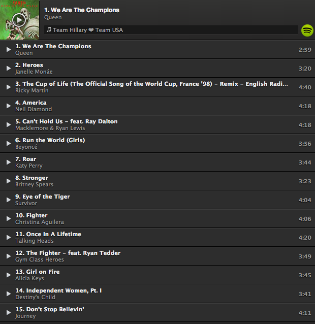 #beyonce RT@mashable Check out Hillary Clinton's victory-themed Spotify playlist:http://on.mash.to/1LO5iapThanks. Twitter will use this to make your timeline better. UndoUndo