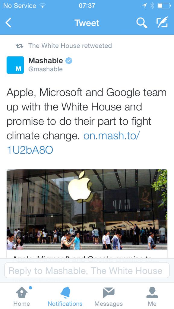 Apple, Microsoft & Google promise to do their part to fight climate change. http://on.mash.to/1U2bA8O via @mashablepic.twitter.com/o4e8g6J1hq