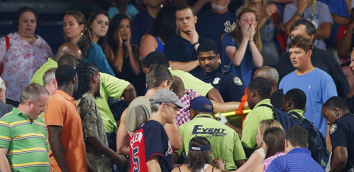 Fan dies after falling from upper deck during Braves-Yankees game at #TurnerField http://on.mash.to/1homvLD pic.twitter.com/ina9ivelH0