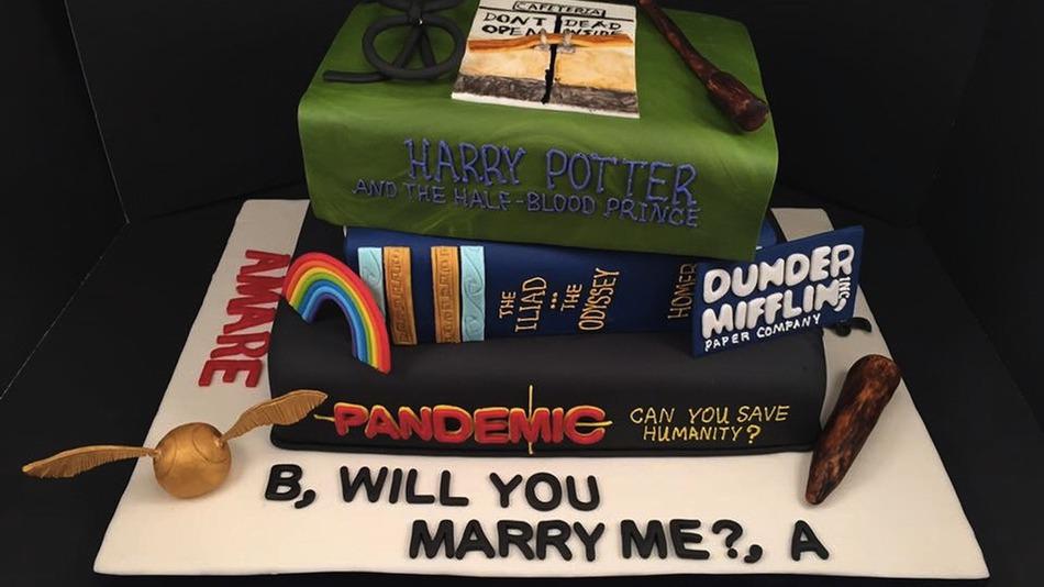 This proposal cake combines 'Harry Potter,' 'The Office' and 'Buffy The Vampire Slayer' http://on.mash.to/1LNguAr pic.twitter.com/8kqRcN3DUV