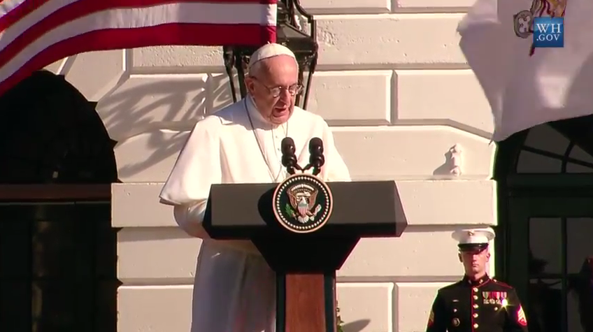 "Good morning," @Pontifex says in English. The crowd responds: "GOOD MORNING!" http://on.mash.to/1L5JJ76  #PopeInDCpic.twitter.com/pyXsG1Ik4a