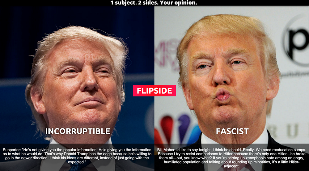 @mashable@realDonaldTrump#trump Incorruptible/Rascist? What are your views? http://flipside.news/donald-trump pic.twitter.com/TTMzVXSzld