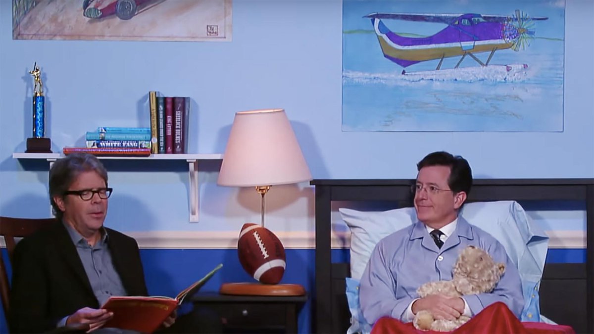 Stephen Colbert snoozes, but not before a bedtime story about America http://on.mash.to/1LEdE3q pic.twitter.com/2zPKRzQqjF