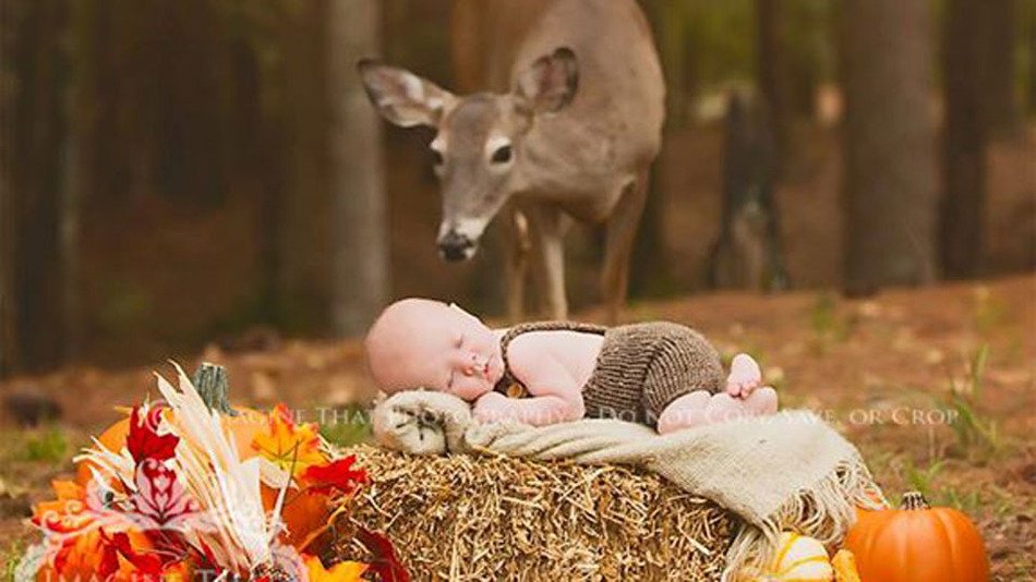 Baby photo with friendly photobombing deer can't get any more magical: http://on.mash.to/1SEt4Y0 pic.twitter.com/t4S5Vthtvs
