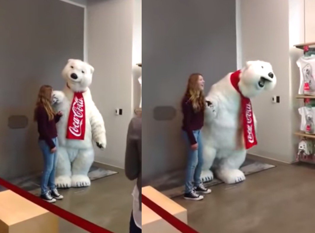 This Coca-Cola polar bear is enjoying his job 100% http://on.mash.to/1QBdwGf pic.twitter.com/0uS0fEdLOL