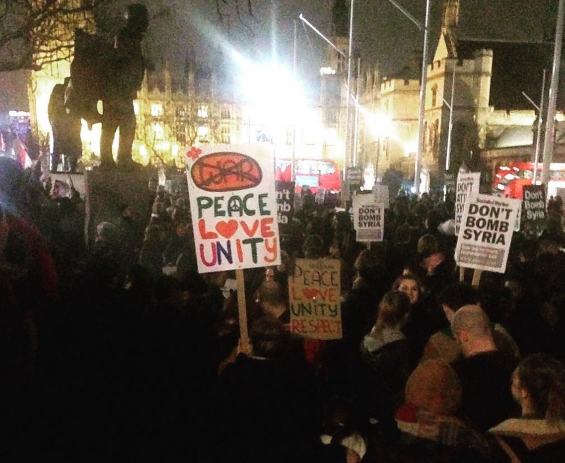 Thousands protest in London ahead of Syria airstrikes vote http://on.mash.to/1RlEkJY pic.twitter.com/MtBlrEtroI