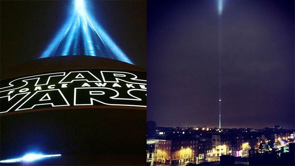 Spire of Dublin was turned into a giant lightsaber and it looked strangely beautiful http://on.mash.to/1I8zjmg pic.twitter.com/t7nCHfLCfS