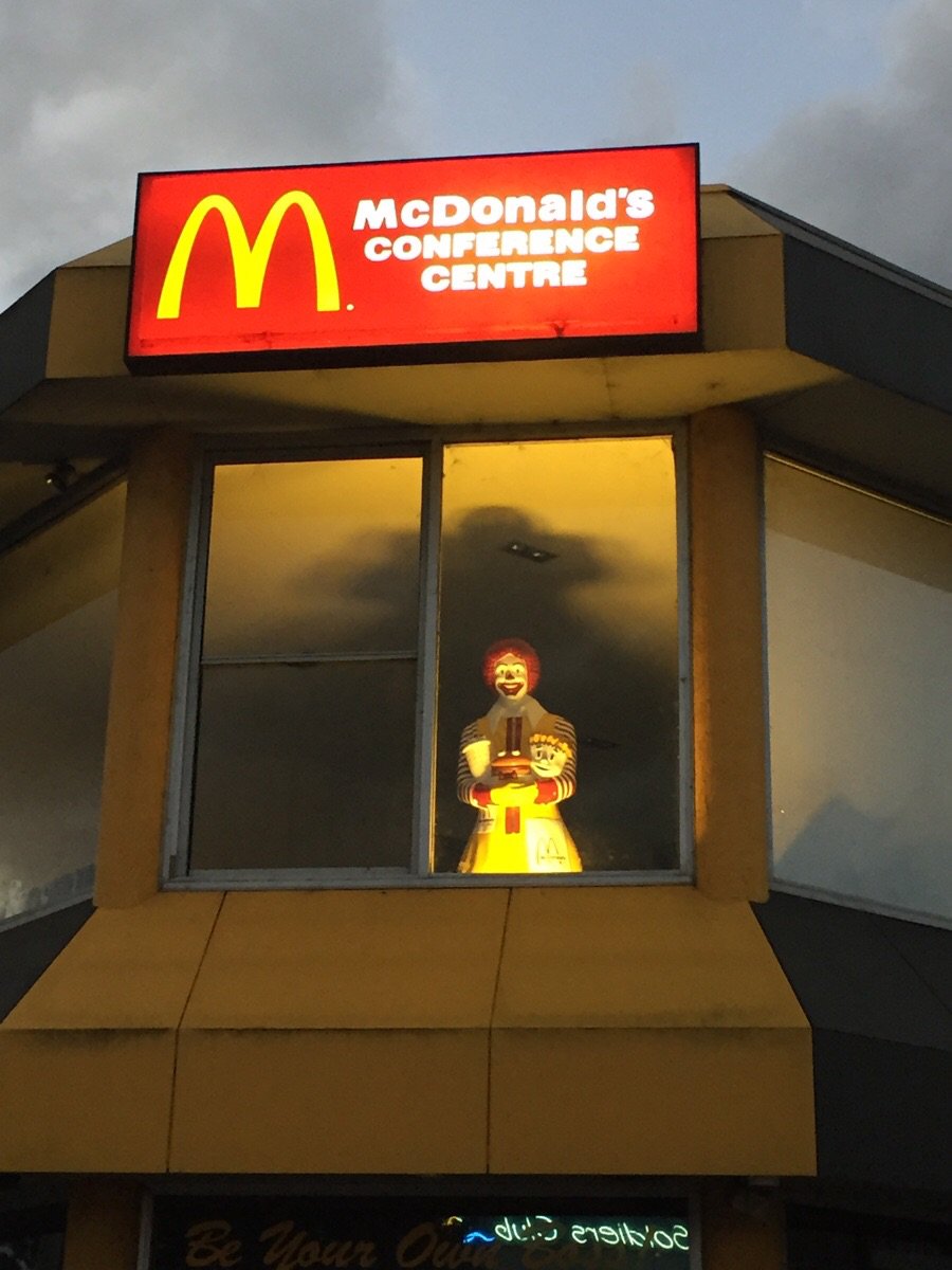 @mashable: Not lovin' this creepy Ronald McDonald in the window http://on.mash.to/1ICfq7h pic.twitter.com/IlqnQXAqM8” Scared O' Clowns!