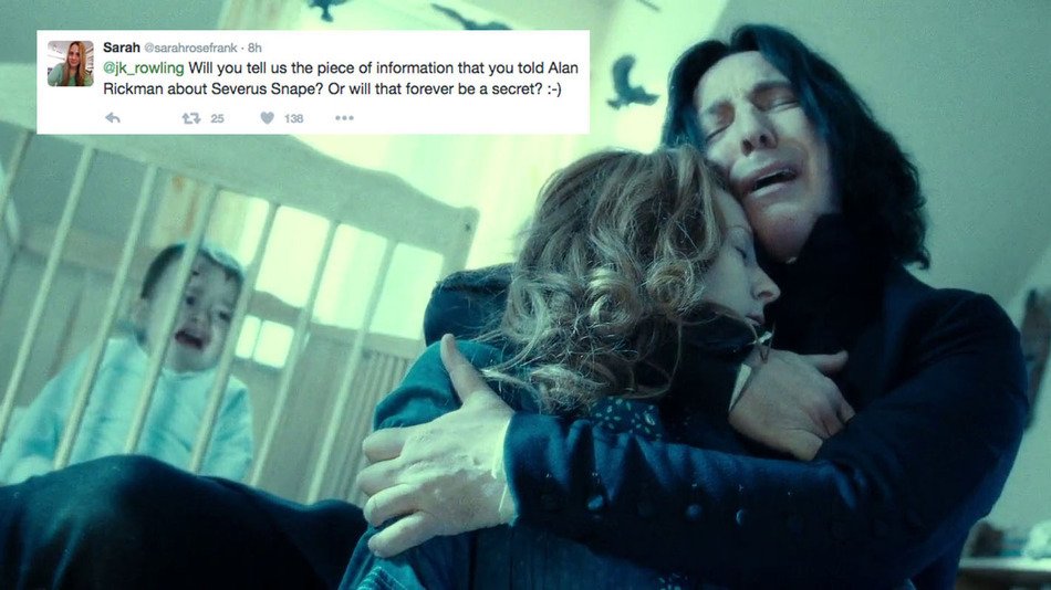 J.K. Rowling reveals how she gave Alan Rickman a major clue about Snape's character: http://on.mash.to/1Pn7MKy pic.twitter.com/HJ5ZoIpZbE