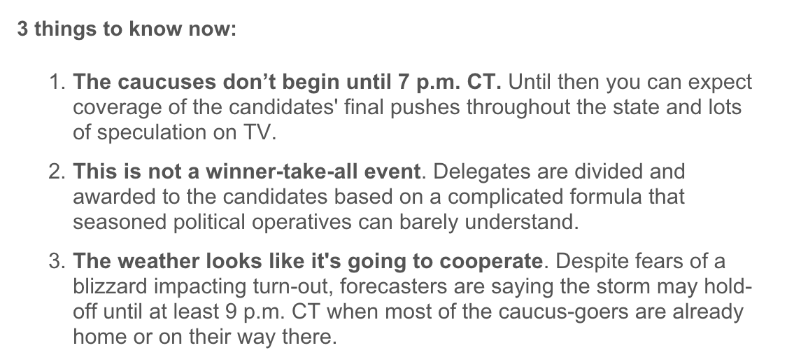 Three things to know about #iacaucus day — from the live blog http://on.mash.to/20BUEJH pic.twitter.com/Dr7Qo45ECj