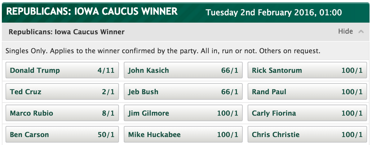 This Irish bookmaker is pretty confident @realDonaldTrump is going to win in Iowa http://on.mash.to/1QUZHSQ pic.twitter.com/Z5HGQYmr5T