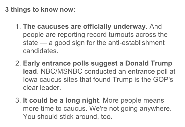 The Iowa caucuses are underway and it's looking like a night for the history books http://on.mash.to/1Pv09WY pic.twitter.com/SeIa0tyYOp