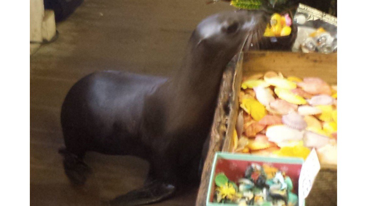 Shopaholic sea lion gets some shopping done in a gift store http://on.mash.to/1R0eOKF pic.twitter.com/cZDK8HXWwU