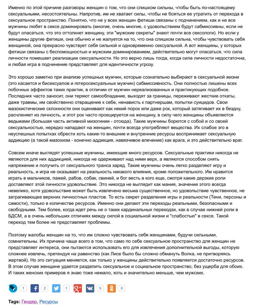 @feminismkg 1) БДСМ это суть гендера, повсеместная и поэтому невидимая "женственность" = сабмиссивностьhttps://twitter.com/feminismkg/status/676770755632340992 …