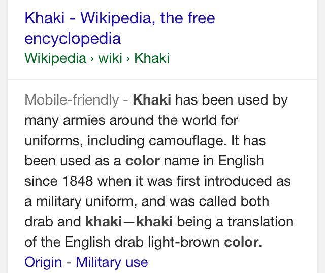 @mashable the question was "what are you wearing?" Who answers with a color? Khaki is a style. The pants were tan/lt. brown in color.Thanks. Twitter will use this to make your timeline better. UndoUndo