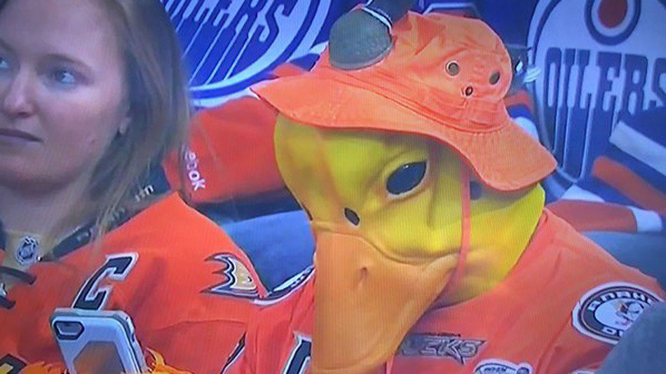 GAH w h y RT @mashable: Anaheim Ducks fan shows up to game in full duck costume, as you do http://on.mash.to/1PRsdAt pic.twitter.com/bc5BmFht5x