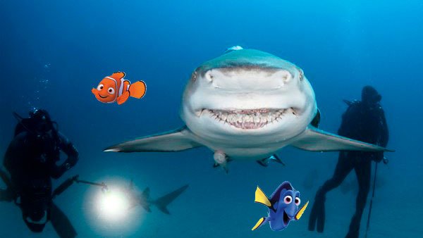 Shark grinning from fin to fin looks just like Bruce from 'Finding Nemo' http://on.mash.to/1UpUfKh pic.twitter.com/75S4T1VnFb