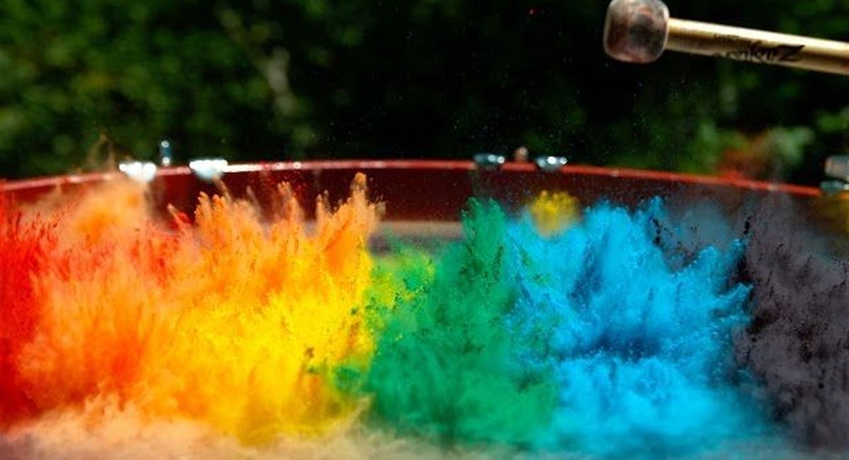 The Slow Mo Guys make a beautiful rainbow using powder paints and a drum http://on.mash.to/1VpqWYE pic.twitter.com/VT72wtMlWX
