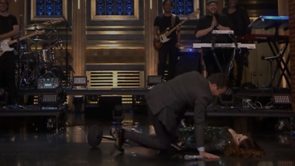 If you're gonna fall during a late show performance, best to do it on Fallon's.