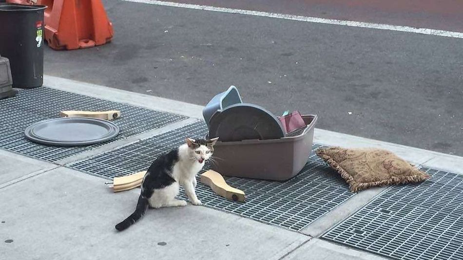 but then he was saved! before I found this, I could actually feel my heart breaking, poor little guy... http://www.iizcat.com/post/3715/Cat-dumped-on-street-corner-with-his-belongings-gets-rescued-by-community …