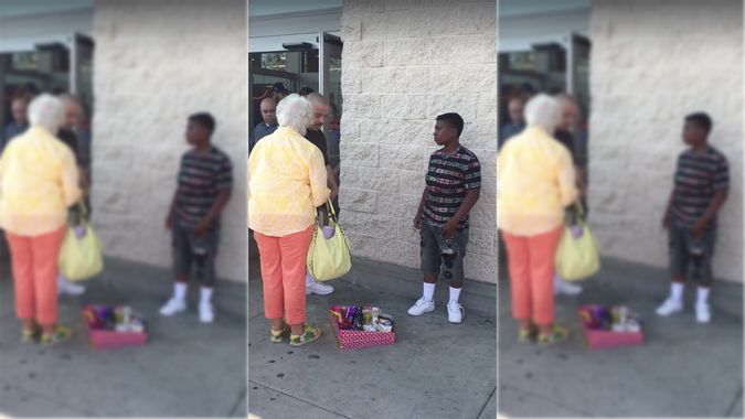 or, or, or, old lady and accomplice team up to assault and rob child of candy? That makes for a way sexier story.