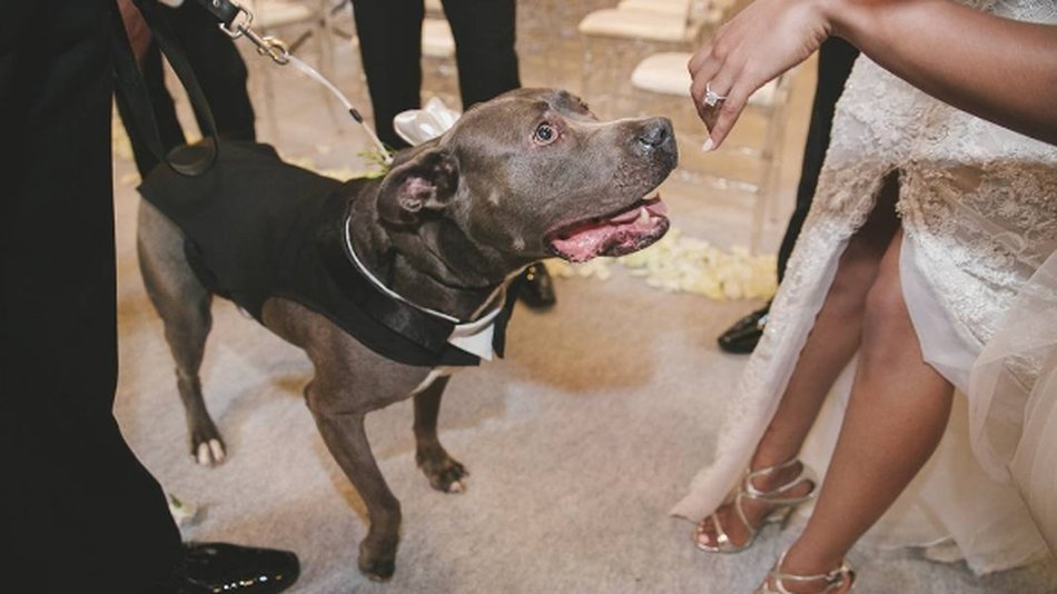 Rescue pit bull serves as dapper groomsman at NFL player's wedding http://on.mash.to/29Bbx7U pic.twitter.com/wJPMokvK3b