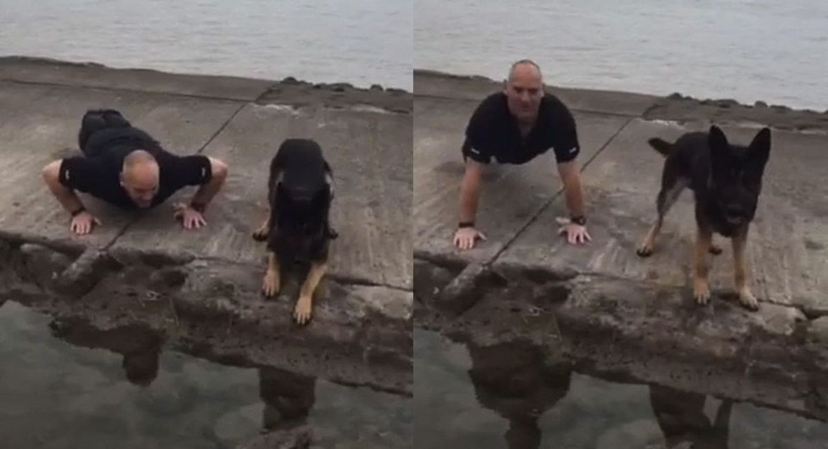 Adorable police dog joins his human for important push-up challenge http://on.mash.to/2a50kJe pic.twitter.com/1DKyCx9UWj