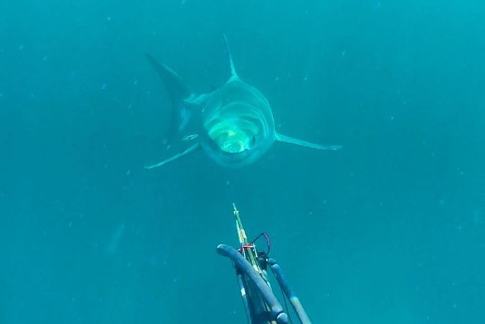 Great white shark charges man, pokes it upside the head http://on.mash.to/29XodC9 pic.twitter.com/JMetx8pYDv