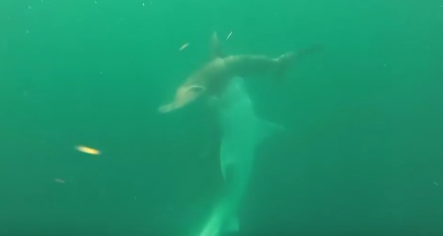 Once in a lifetime scene. Never thought sharks would go at it among another.